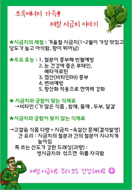 시금치는 제철에 먹으면 풍미·영양이 최고이며,