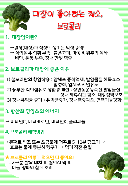 브로콜리의 대장 건강 효과가 극대화 된답니다.