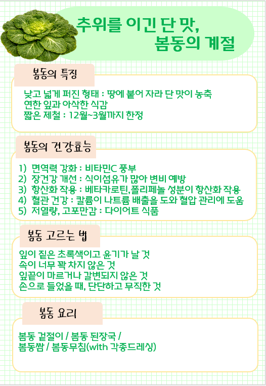 짧은 제철에만 만날 수 있는 채소, 봄동은 지금이 가장 맛있어요:)