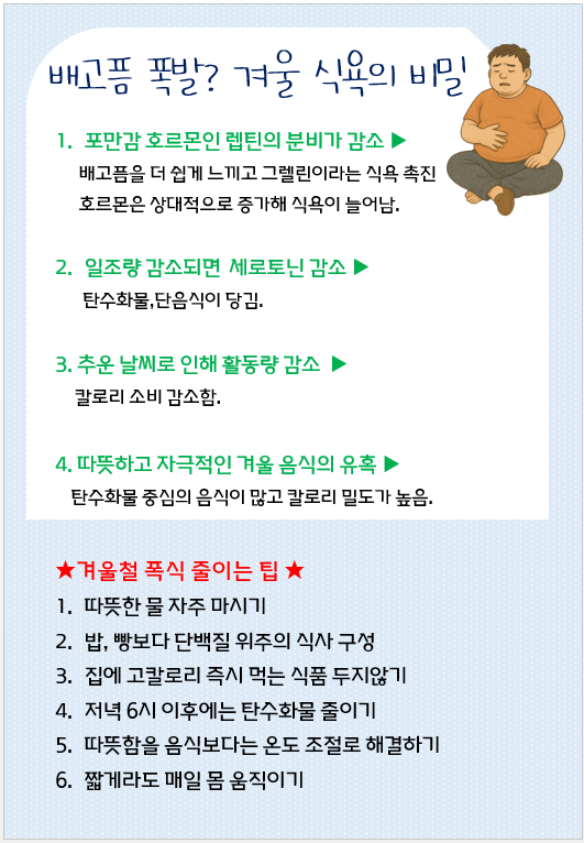 겨울철 체중 증가는 의지 문제가 아니라 몸의 생리적 반응이며,